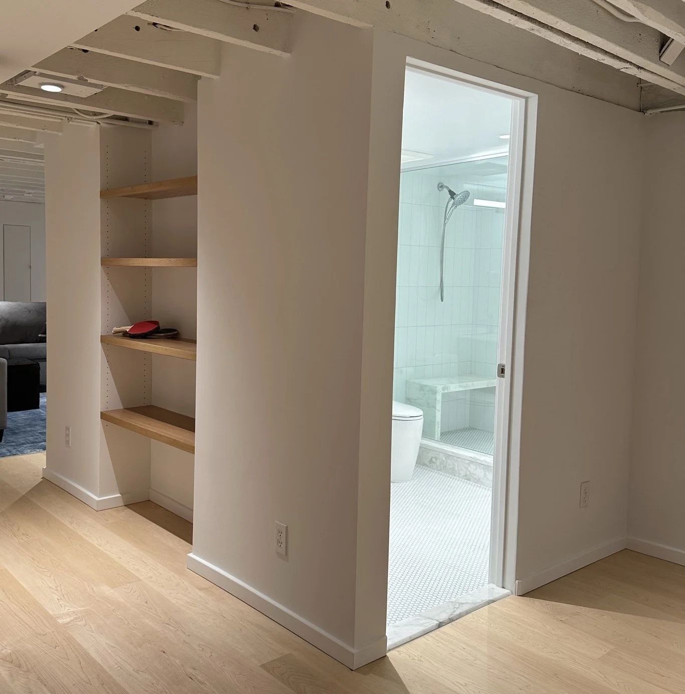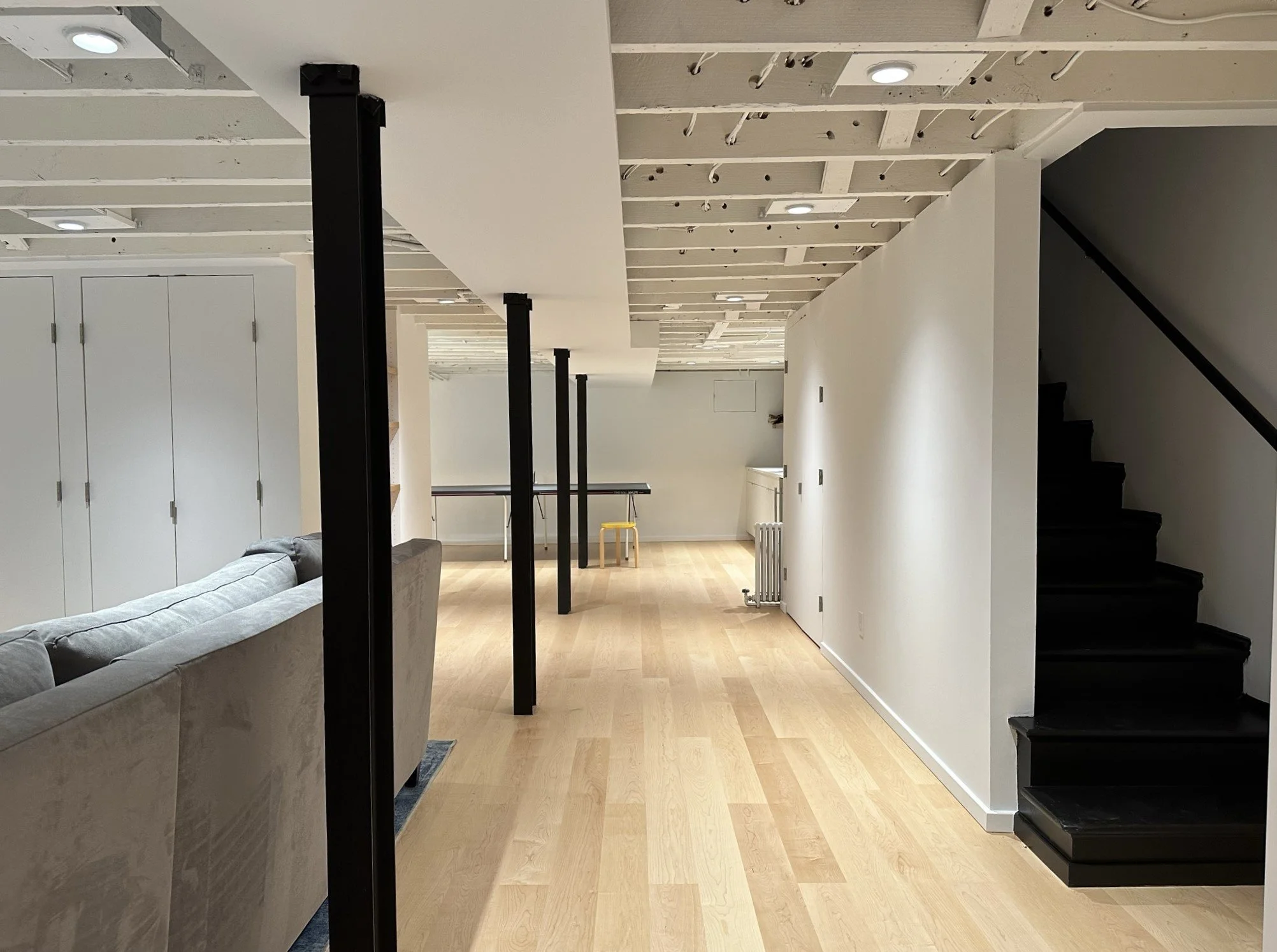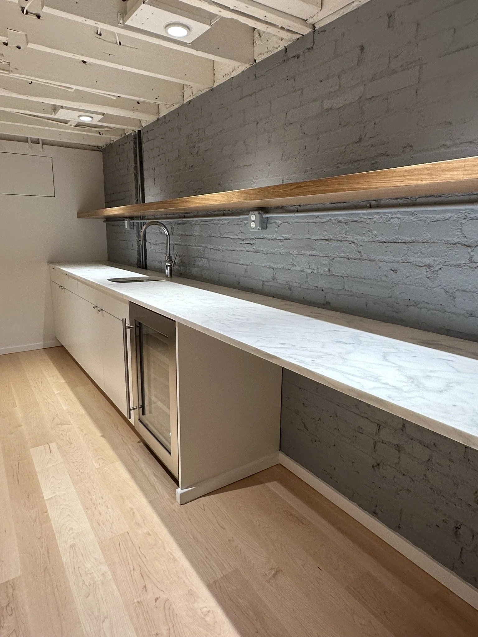 This project entailed the renovation of a historic rowhouse in Mt Pleasant. The basement and top floor, kids bedroom level, were transformed into more modern, open and functional spaces. The basement was opened up to create an inviting living area for the kids including a small kitchenette, bathroom and ping-pong table space. The top floor bedrooms and bathrooms were renovated to update finishes and fixtures and the layout improved to create more spacious and elegant rooms.