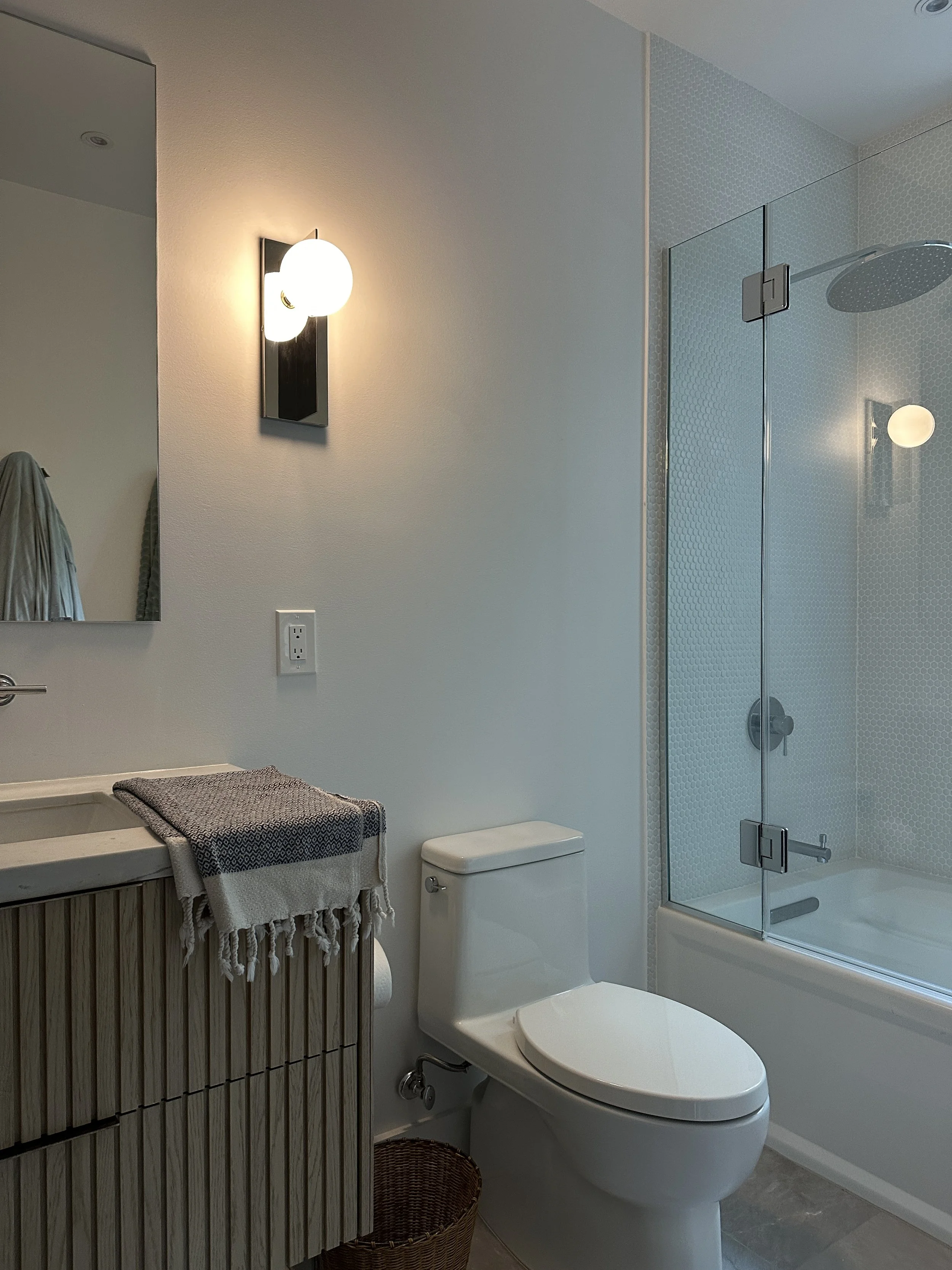 This project involved the renovation of a historic rowhouse main bathroom space. The bathroom was opened up to create a larger, better flowing space with updated finishes and fixtures.