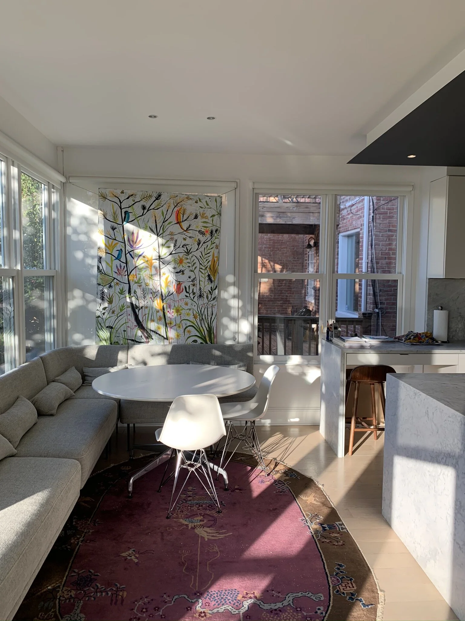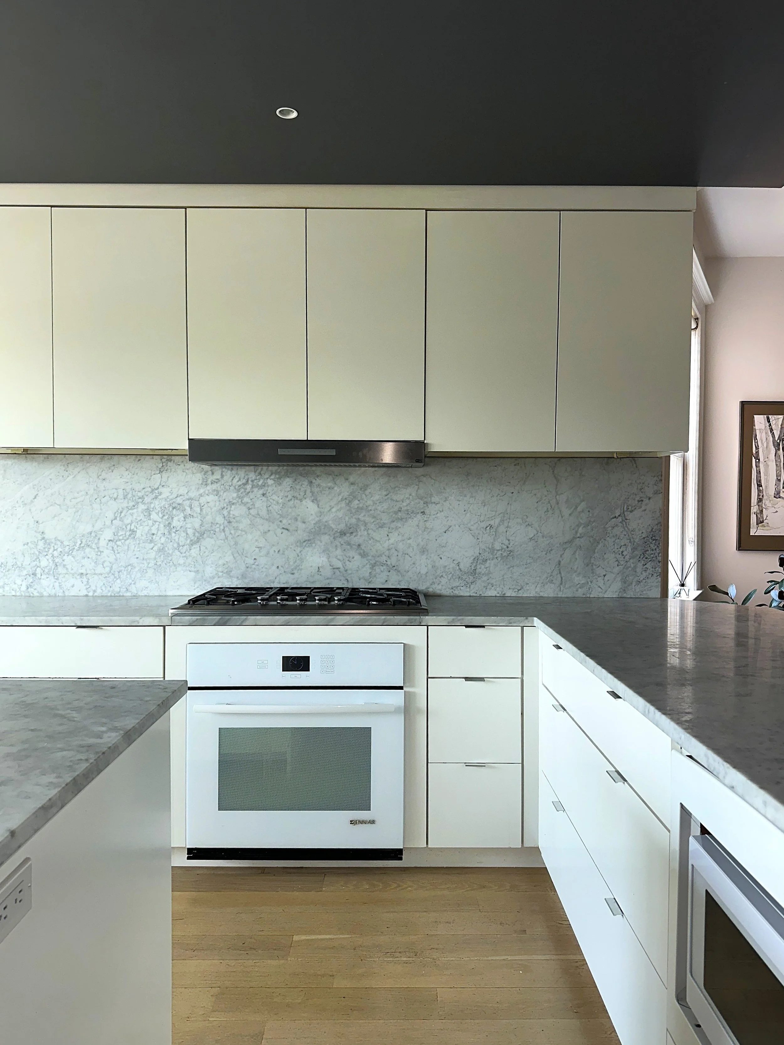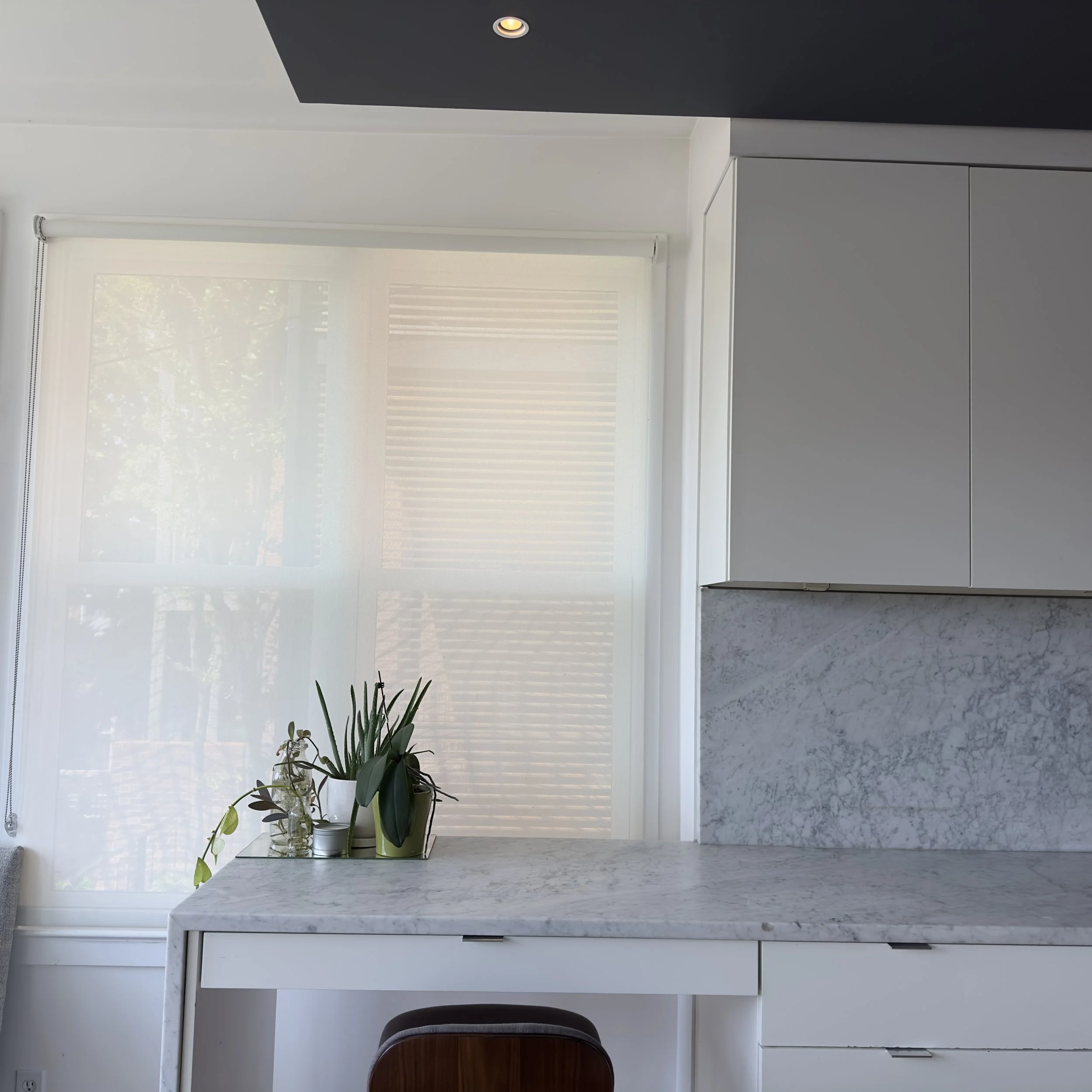 This project involved several phases to renovate a historic rowhouse in Mt Pleasant. The main floor living spaces were opened up by removing existing walls and the front living area connected to the very active kitchen space in the rear. The clients wanted a modern, clean aesthetic throughout the house. We transformed the 2nd floor main bedroom and bathroom spaces by introducing natural light to the bathroom via new large windows, and tucked the closet into an area without windows. The main bedroom now overlooks the rear garden and trees. A reading nook was created off a 3rd floor bedroom with marvelous views of the Capitol monuments, newly framed by exposing existing wood planks on one wall and matching it on the other wall, ceiling & floor surfaces.