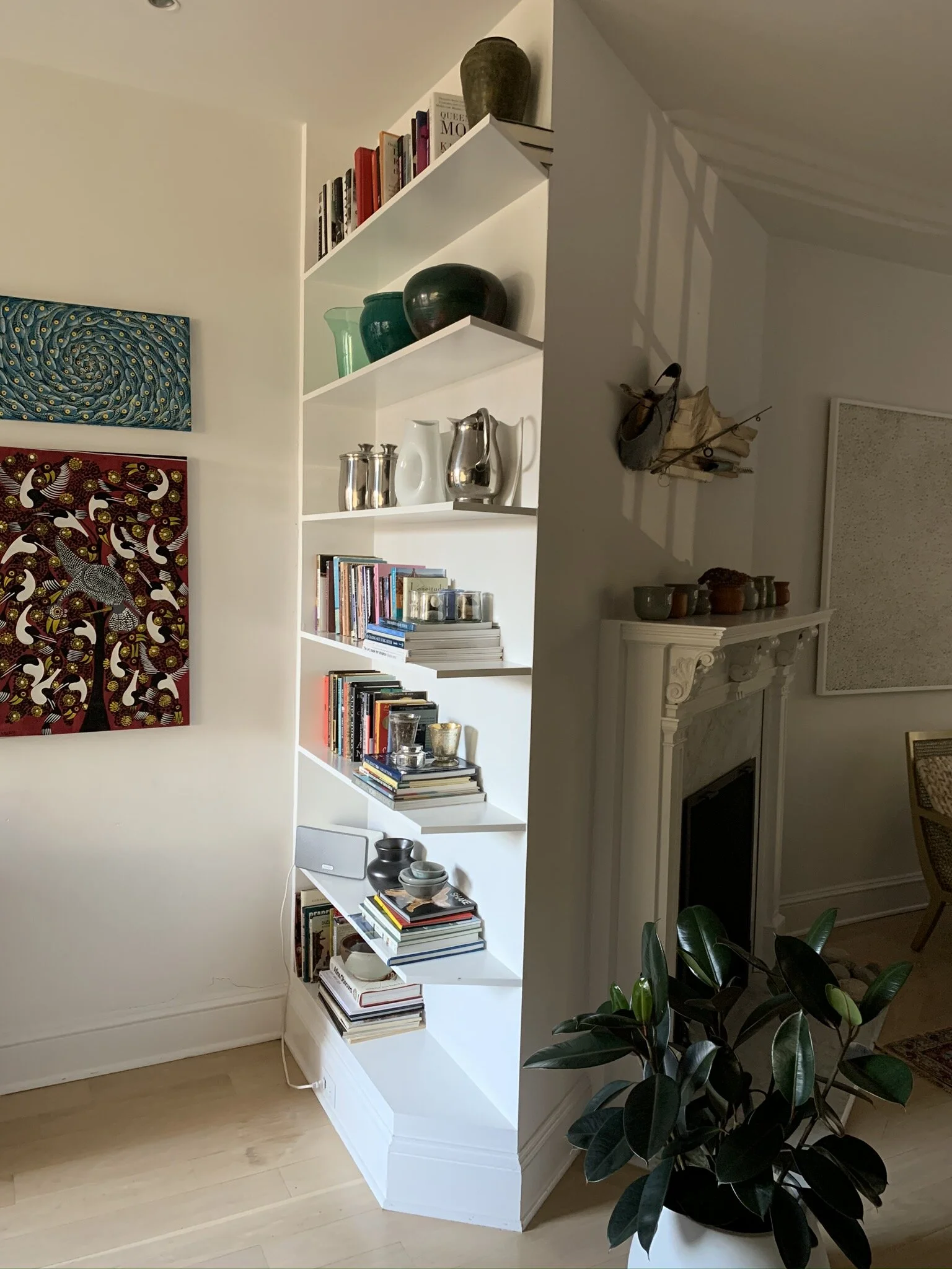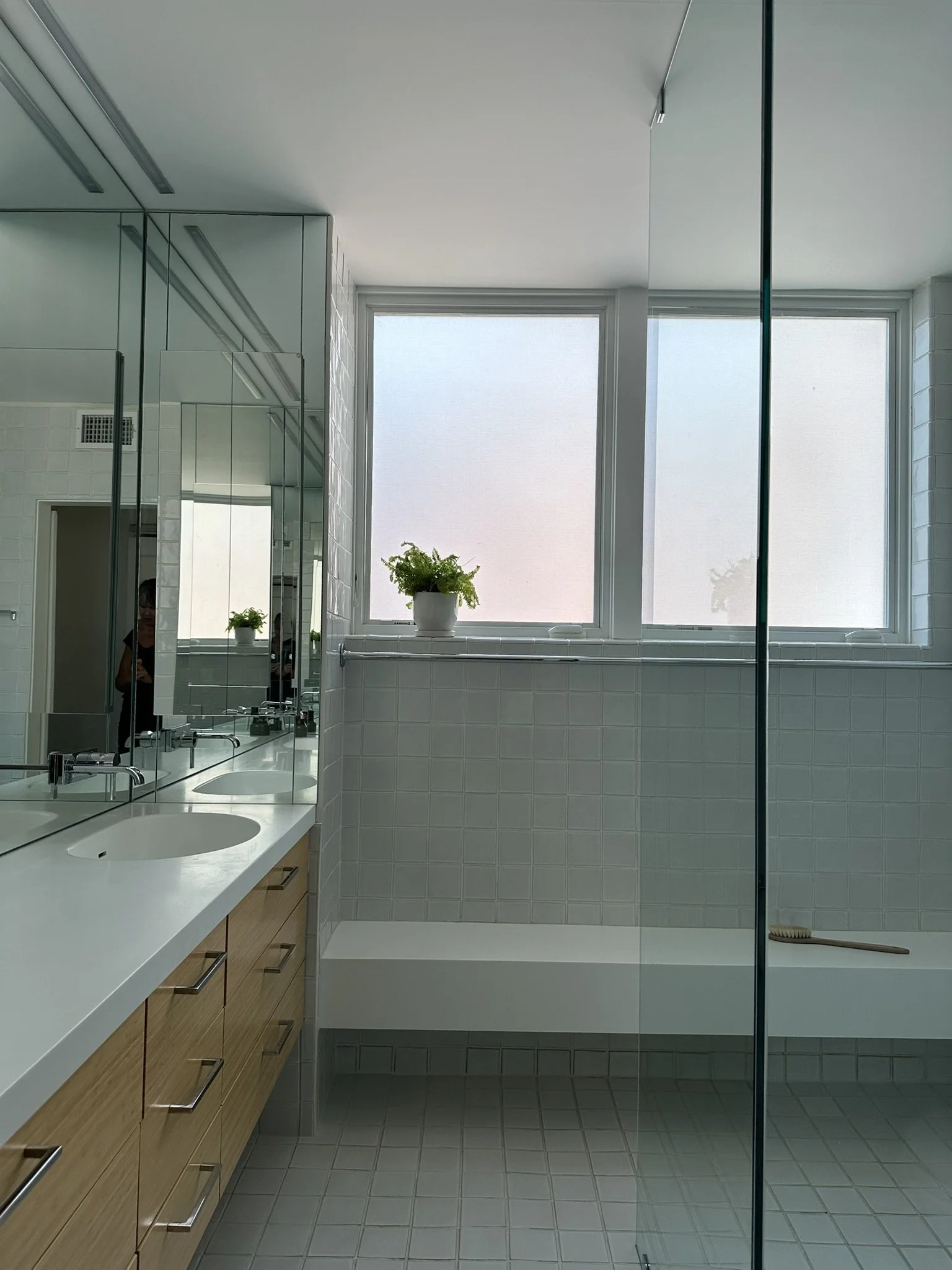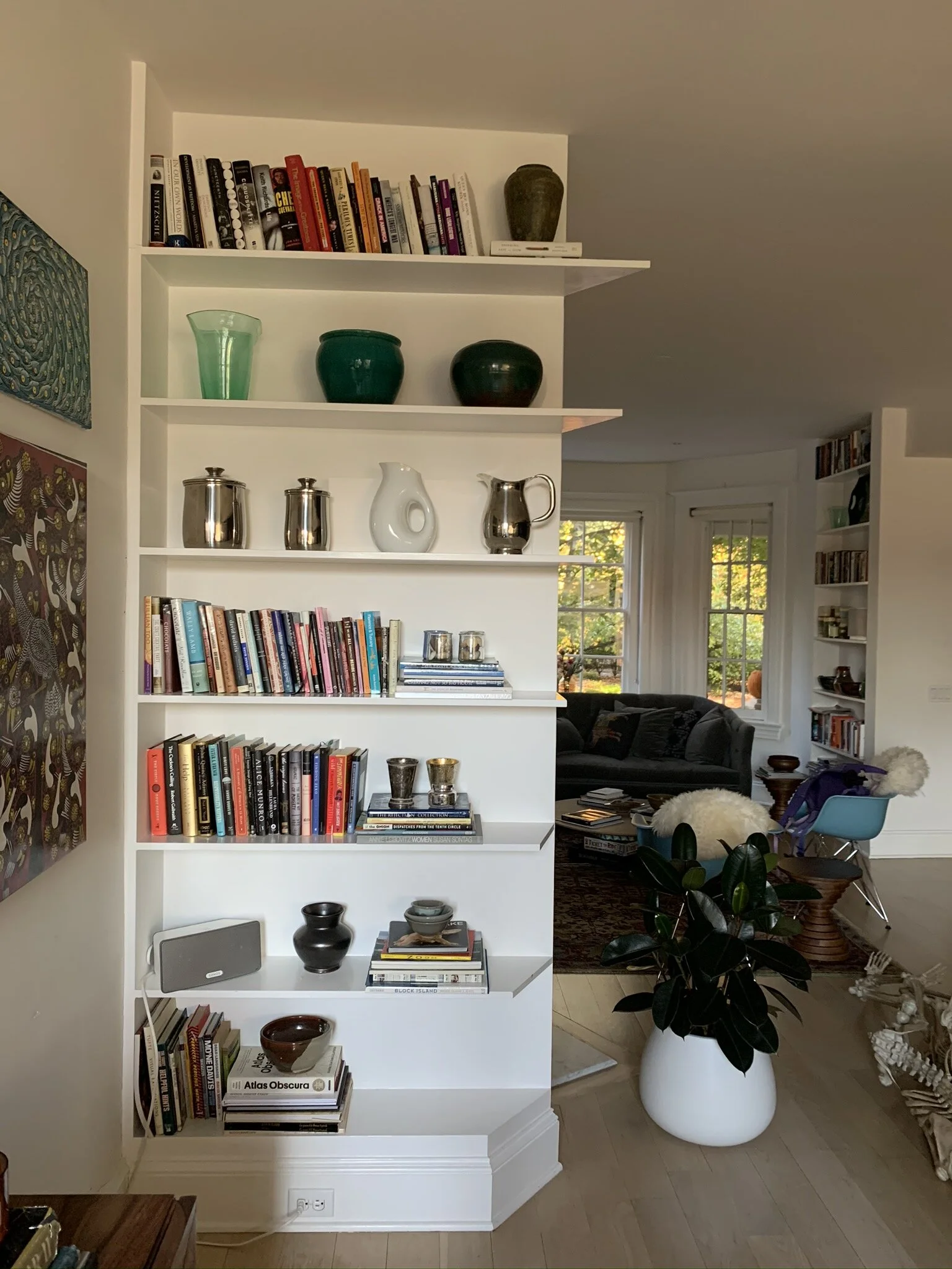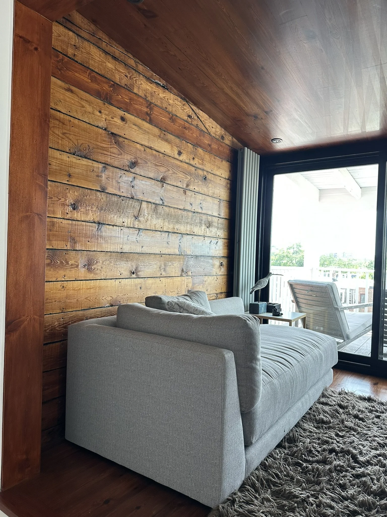 This project involved several phases to renovate a historic rowhouse in Mt Pleasant. The main floor living spaces were opened up by removing existing walls and the front living area connected to the very active kitchen space in the rear. The clients wanted a modern, clean aesthetic throughout the house. We transformed the 2nd floor main bedroom and bathroom spaces by introducing natural light to the bathroom via new large windows, and tucked the closet into an area without windows. The main bedroom now overlooks the rear garden and trees. A reading nook was created off a 3rd floor bedroom with marvelous views of the Capitol monuments, newly framed by exposing existing wood planks on one wall and matching it on the other wall, ceiling & floor surfaces.